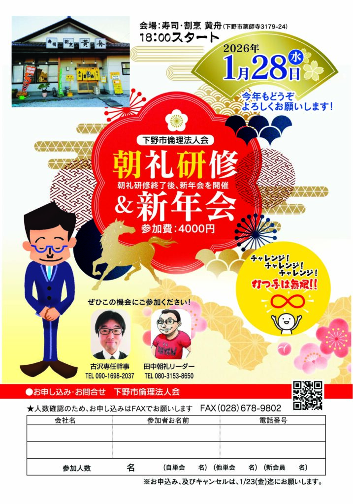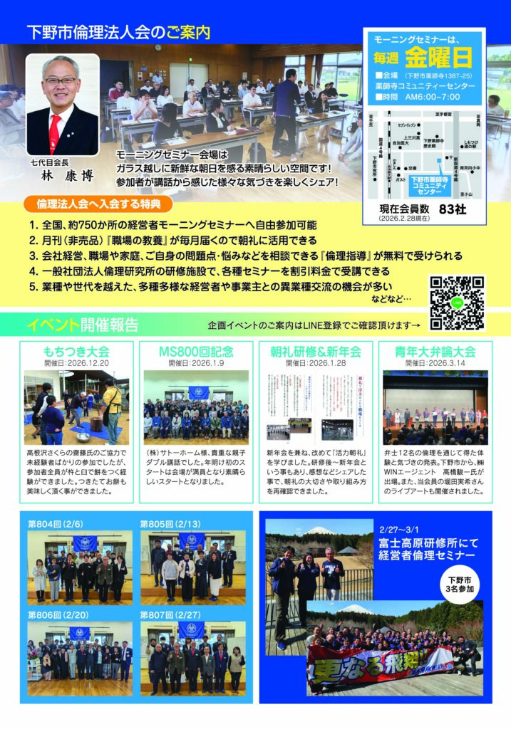 入会しますと、倫理法人会で開催される定例の行事への参加の他、